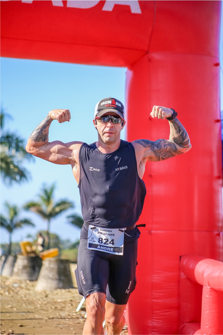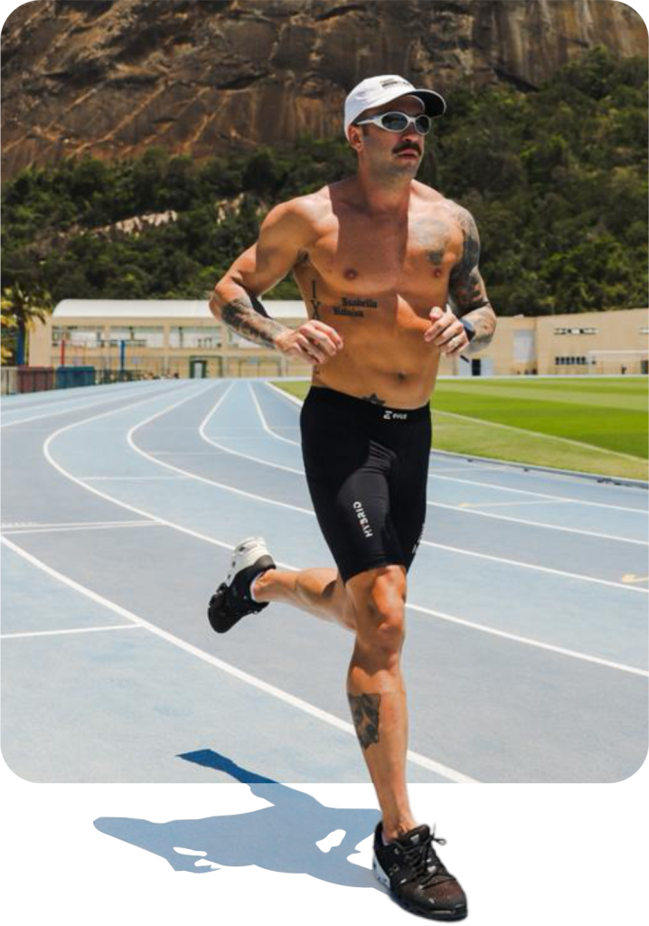 Posteriormente, entrei no triátlon, onde conheci e aprofundei meus estudos sobre treinamento híbrido, integrando triathlon, corrida e musculação com foco em performance, estética e longevidade.